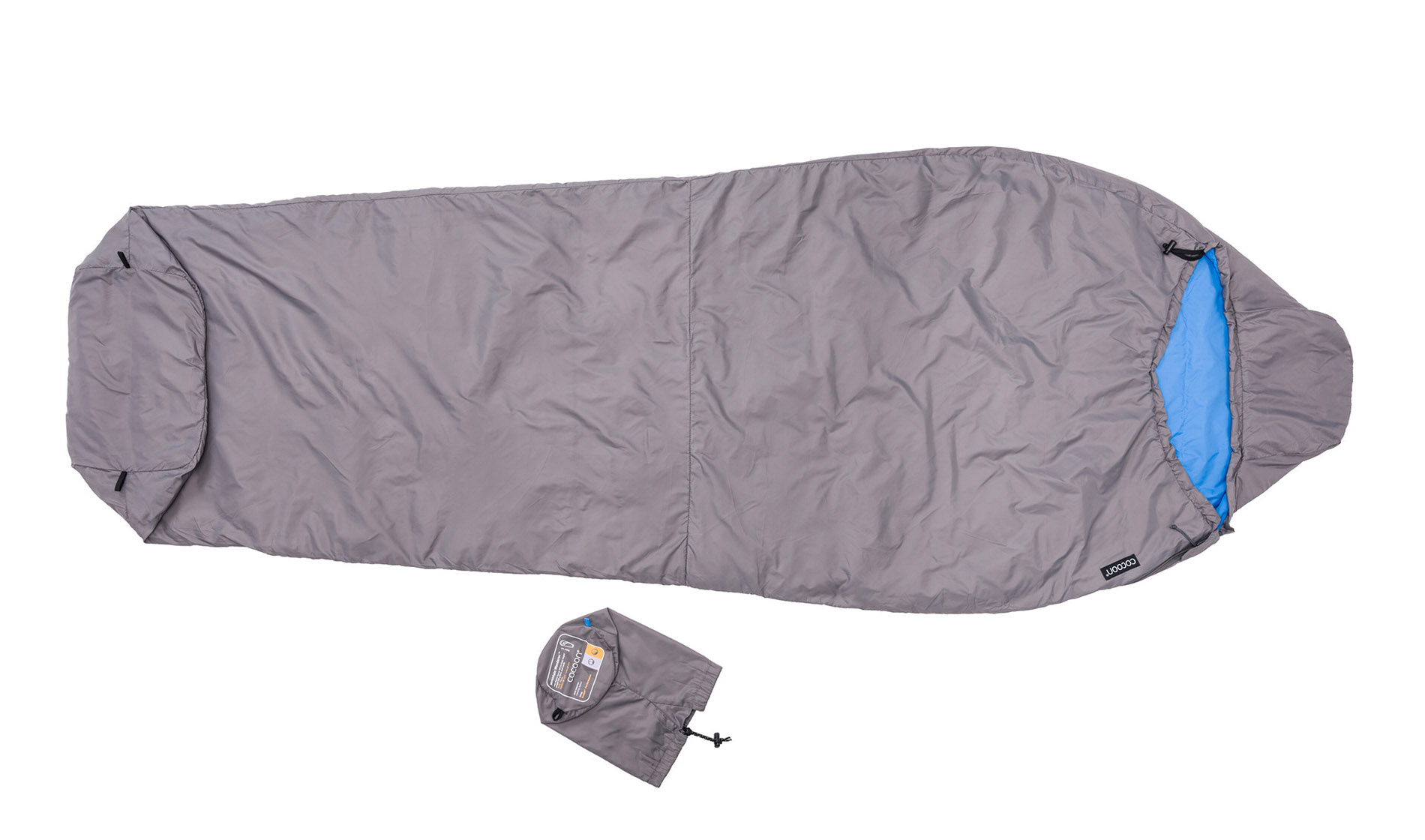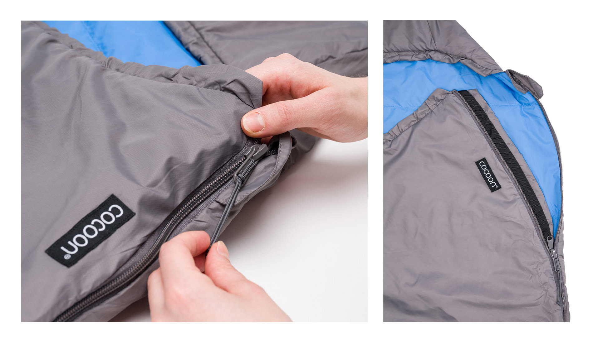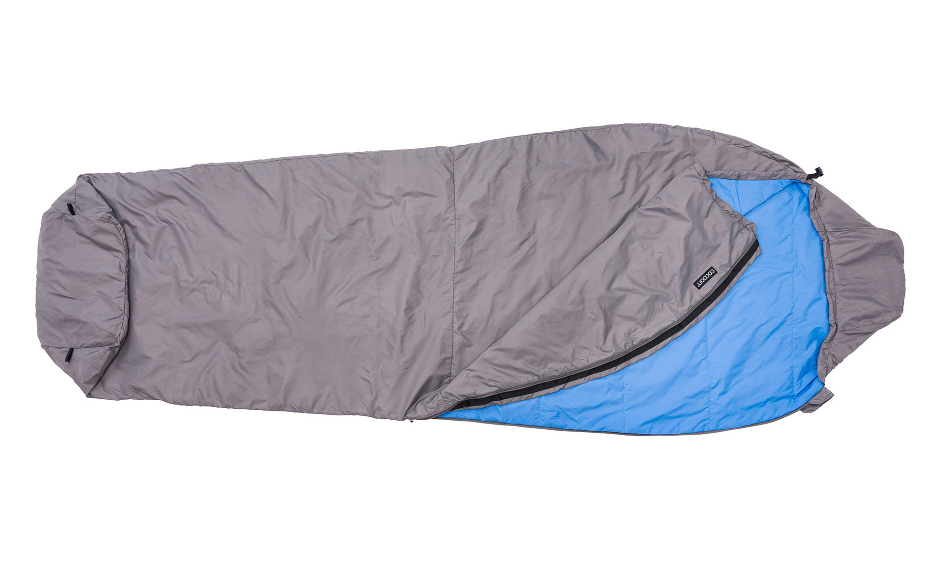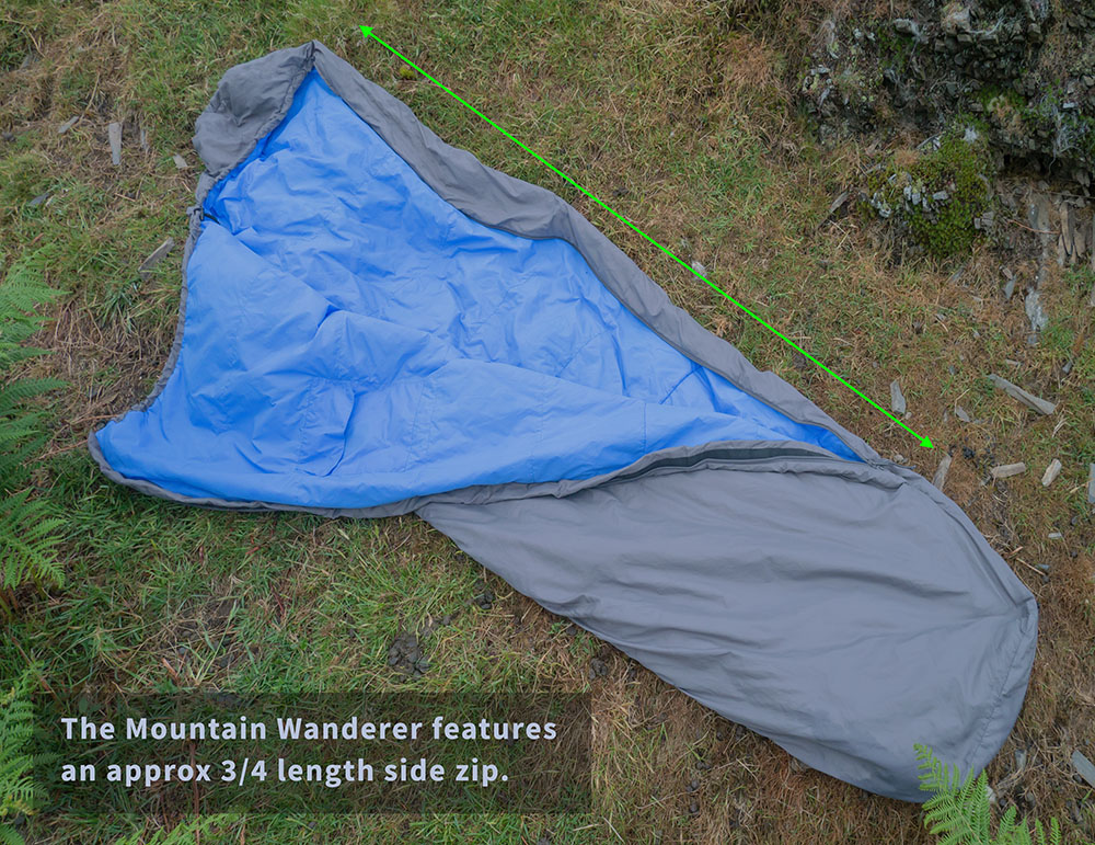 The Mountain Wanderer uses a 2-way #5 left-side zipper which has anti-snag webbing stitched along its path. The bag can be unzipped from inside or from the outside. All quite standard stuff. Cocoon have not tried to re-invent the sleeping bag.