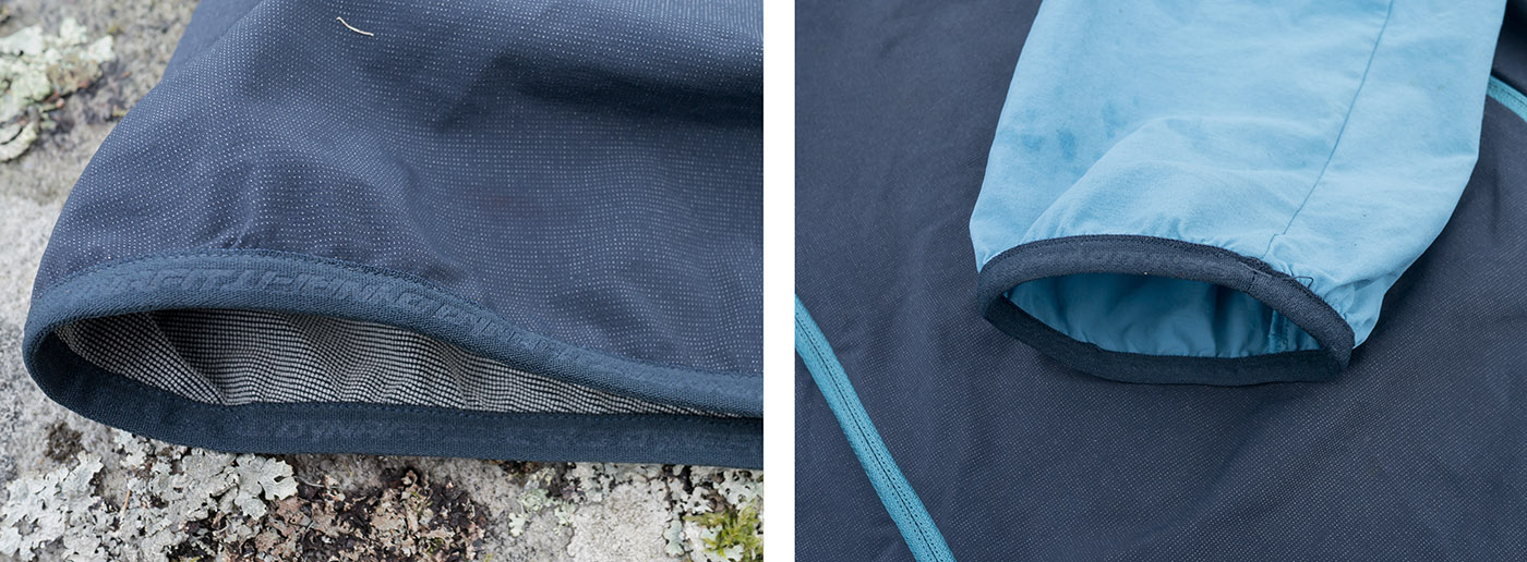 The cuffs are lycra-bound and have sufficient stretch to allow the user to roll up their sleeves and keep cool. At the hem is a straight-forward elasticated binding. Something we'd like to see on OMM's recently reviewed Halo Smock.